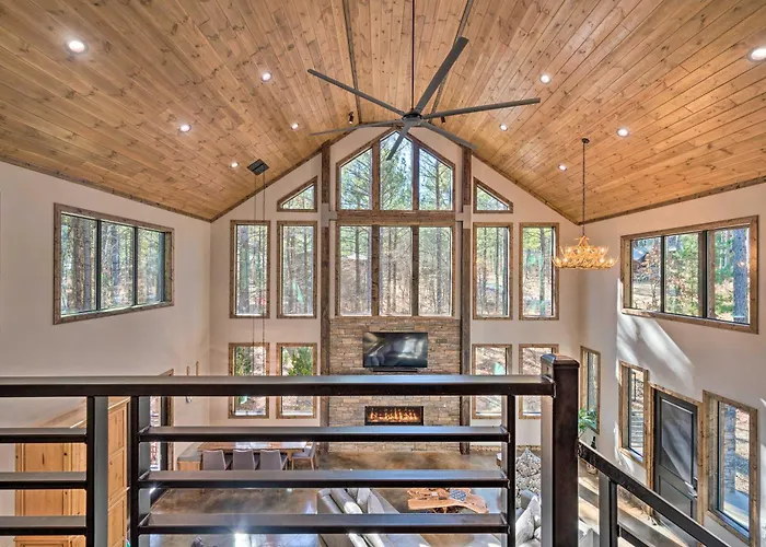 The 5-bedroom Broken Bow Lazy Dog Lodge With Hot Tub, Pool Table is located nearly a 10-minute drive from Beavers Bend Depot and Trail Rides and provides guests with a Jacuzzi for a more relaxing stay. Featuring a sunny patio, the accommodation is situated a 10-minute ride from Fish Tales Winery & Vineyards.